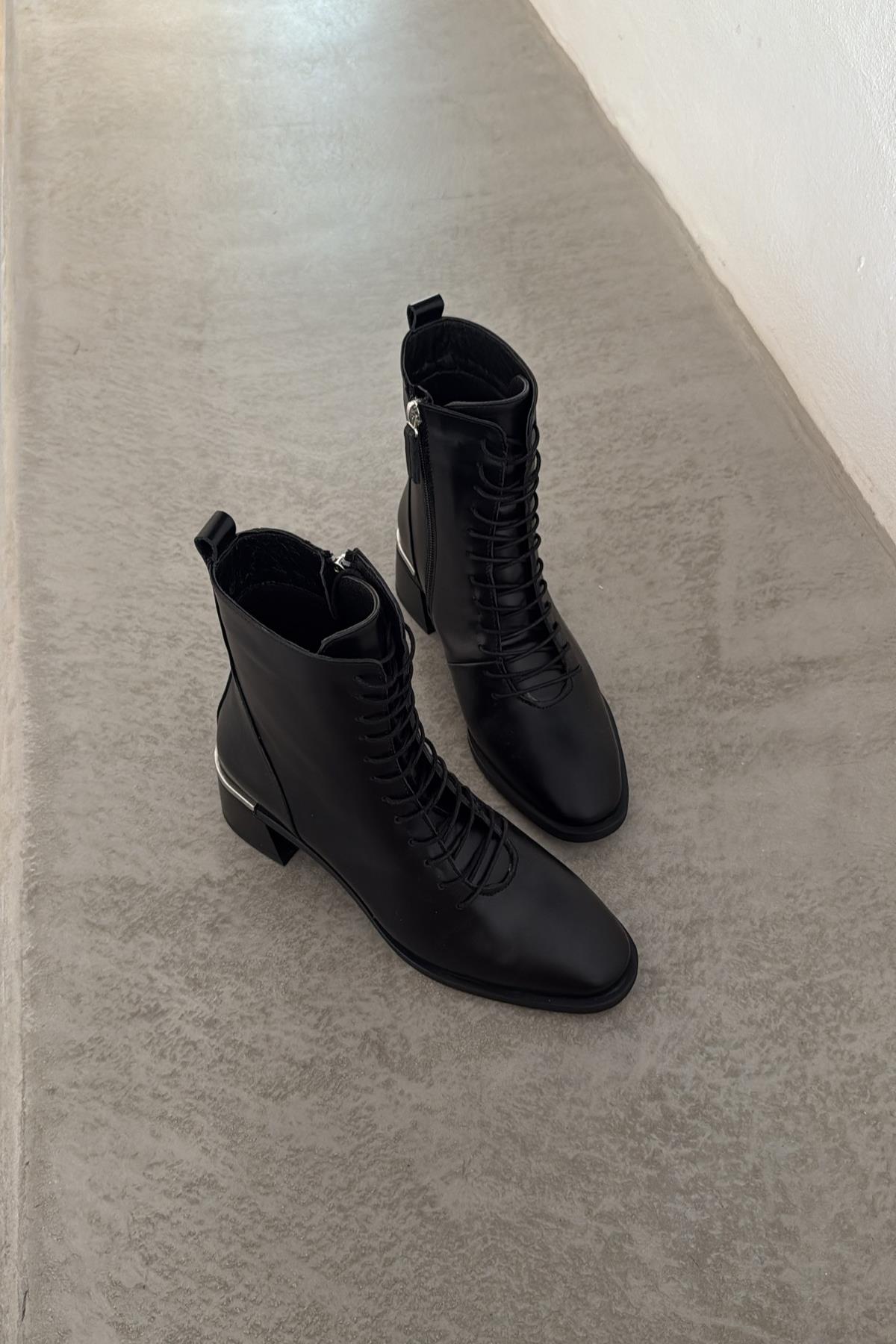 Kalıp: Tam kalıp, Taban:TPU TABAN , Malzeme:Gerçek Deri, Topuk Boyu: 4.5 cm, Yükseklik 15 cm., Bilek genişlik 26 cm.